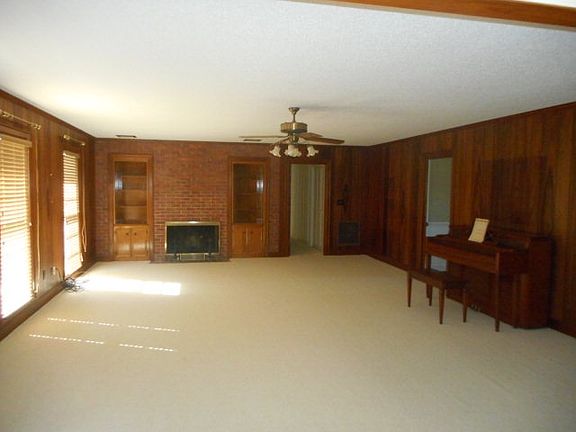 This 3 bd 3 ba country home is located on 8.5 acres. Kitchen and large laundry room have ceramic tile. Breakfast area opens up into a spacious carpeted den with fireplace and wood paneling. Large laundry room off kitchen and garage has a sink and a full bath adjacent to it. Formal living room and dining room provide plenty of space for entertaining. Master bedroom has a vary spacious vanity area and huge walk-in closet. Lots of storage area in bedroom closets and extra closets in hall.