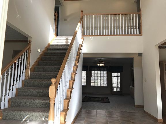 Welcome to this one-owner, custom built home situated on 5 beautiful acres accented with a fully stocked pond. The front porch welcomes you as you enter a 2 story foyer with a double staircase. With natural light flowing room to room, on the main floor, you can enjoy a sitting room with a gas fireplace, living room with built-ins, dining room, office, full bath and kitchen with an island and rollouts. Upstairs, enjoy a master bedroom with a sitting area, large bath with double vanities, jetted tub, double shower and walk-in closet. One bedroom has a private bath and the other bedrooms feature a Jack and Jill bathroom. The other room could be used for a bedroom or playroom. The walk-out basement is finished with a play/game room, additional storage and more. Breath taking views, detached 2 car garage/workshop, along with a one-year home warranty makes this home buyer's top choice. Call, text, Facebook or email Angie Picklesimer-Dierks at 812-870-8561 or angie@wabashvalleyrep.com