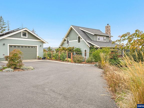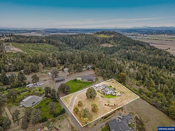 Take in sweeping views of Mt. Hood, Mt. St. Helens, and Mt. Rainier on clear days from this beautifully landscaped 2-acre property in the Cascade School District—just 15 minutes from South Salem and close to local wineries. The grounds feature vibrant flower beds, a stunning rose garden, and a lush raised-bed garden ideal for vegetables or herbs.Built in 2015, this thoughtfully designed home blends newer construction with classic Craftsman character—featuring hardwood floors, solid wood doors and trim