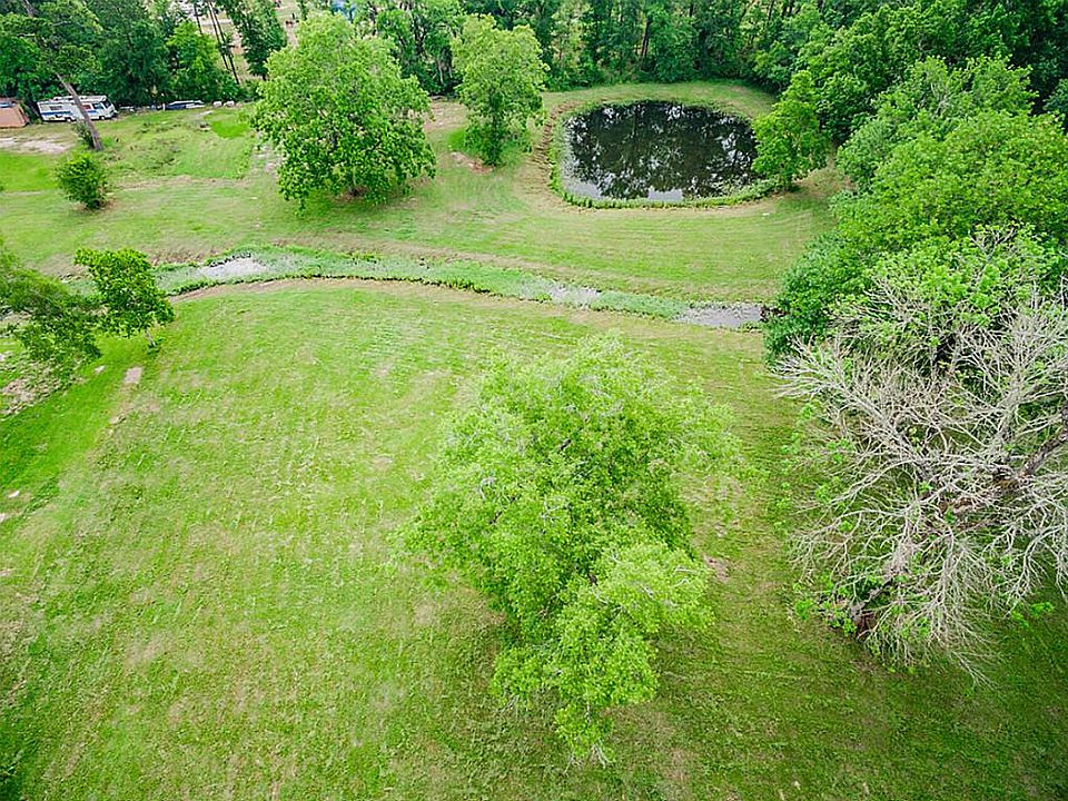 Nice 1.5 acre lot, unimproved, partially cleared with pond. Perfect for mobile home or to build a home.. unrestricted. Easy access to Hwy 59 , about 9 miles and just minutes from 242 and I-45 ..Boundaries in photo are estimated. There are no utilities currently on the property. There are no structures included with the sale. Additional 1 acre lot available.