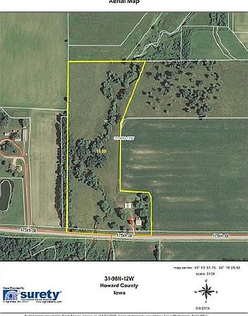 This property is located just west of Lourdes, Iowa. It has 13 acres more or less of creek pasture with mature trees. Great for horses or livestock or hunting land. The home has an open kitchen / dining room, large living room, nice woodwork, partially open stairway, and covered porches. Updates include: vinyl siding, steel roof, some newer windows, newer exterior doors, new LP gas forced air furnace, newer water heater, and a new septic system.
