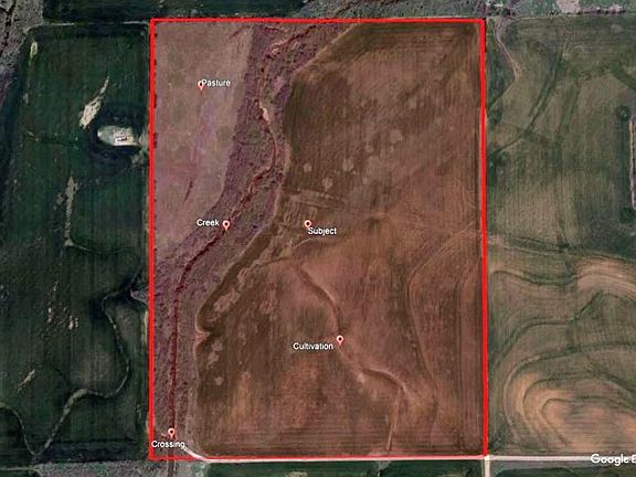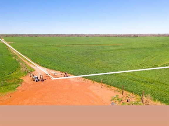 This beautiful Oklahoma land could be your American dream homesite and/or farming or ranching. Approx 2/3 tillable and approx 1/3 pasture. Creek runs diagonal across top half. Farmed for winter wheat with farming lease up but could be continued. Gated entry and fenced. Dirt utility road runs along south property line. Natural swell irrigation. Creek does run. Ok to walk on property but please make appt to drive on property. Well maintained dirt road 1/3 mils. Gravel about 3 miles to highway. 5 mins to town. Not in city limits. Seller does not own mineral rights.