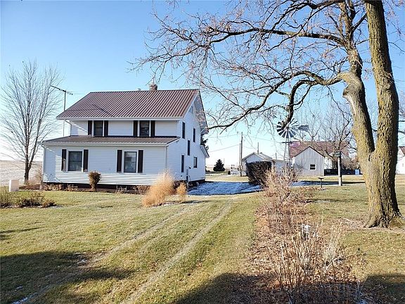 This is one of the nicest acreages you will find! The classic 2 story home sits on 14 acres along with the historic barn and numerous outbuildings. This would make an ideal hobby farm with lots of livestock facilities and pasture. This farm has been in the same family since 1869 making this a truly rare opportunity! The beautiful home features original woodwork and built-ins throughout its spacious rooms. The 3rd floor walkup would be great for storage or additional living space. The Kitchen updates include solid surface countertops. The main floor features a large living room, formal dining room, kitchen, stair hall, and the possible 5th bedroom. Up stairs you will find 4 bedrooms and a full bath. Located 7 miles north of Adair with stunning views in every direction! Schedule your showing now!!