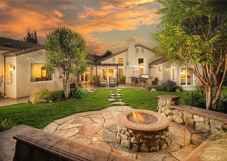 Welcome home! This beautifully appointed single story home located in the Community of Acacia Park offers so much for everyone. Situated on an oversized lot, this gorgeously landscaped home makes you feel like you are in a secret garden upon entering the doors. Each room not only has a beautiful view of the lush landscape, but also has easy access as well. This entertainer's delight boasts a large kitchen with upgraded stainless steel appliances, including a built in refrigerator and double ovens, and opens up to the great room and the expansive indoor/outdoor living space. You will want to spend many evenings outside enjoying the garden or sitting alongside the fire pit roasting marshmallows. When it is time to settle in for the evening, you will find that the bedrooms are generously sized and with two primary suites, it makes having guests or blended families very comfortable. This home experienced a large remodel beginning in 2006 which included a 1,050 sq ft addition, backyard landscaping (with automated and drip irrigation) including a Bull BBQ center, an oversized pergola, stamped concrete throughout the exterior, reroof with THREE layers of underlayment, dual HVAC system and new ducting, extra insulation. (for efficient heating and cooling) and dual pane windows (with a transferable warranty), and storage galore! Including attic storage made in both the garage and west end of the home with easy stair access in both locations! In addition, the community boasts sand volleyball, basketball, tennis and swimming courts. This home and community have so much to offer, it is worth coming to check out this entertainer's dream!