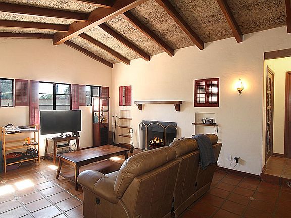 Walk to the U of A from this Jefferson Park beauty! Vintage 1936 home sits on 1/4 acre double lot. 2 bedrooms plus a bonus room that could be used as an office or den. Hardwood, saltillo floors and cool casement windows throughout, vaulted beamed ceiling in great room, wood-burning fireplace plus many period built-ins. Sitting room off of master has french doors that open to the back porch. Entertainer's delight w/ outdoor kitchen and east-facing large covered brick patio. Huge back yard w/ storage shed, separately fenced area back gate w/ parking access from the alley and mature palm trees. Totally repiped in 2012, new water heater and the exterior was just repainted. This north-university home exudes character and period charm.