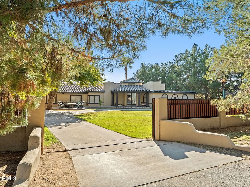 Hidden beneath a canopy of mature trees, this privately gated North Central estate stands apart from anything else in the neighborhood. Thoughtfully designed for those who value space, discretion, and craftsmanship, the property unfolds on a nearly three-quarter-acre setting. At its core is a purpose-built automotive experience rarely found in residential living: secure gated parking for 8-10 vehicles and a striking 2,500-square-foot showroom-style garage accommodating six additional cars, ideal for collectors, creatives, or those who simply appreciate exceptional design. The residence offers six bedrooms and four baths, arranged with flexibility in mind. This easily supports multigenerational living, private guest quarters, or dedicated offices and hobby rooms. The kitchen is updated, equipped with stainless steel appliances and designed to handle both everyday living and effortless entertaining. Outdoors, the property reveals a secluded backyard anchored by a sparkling pool and a private side yard. All of this exists within one of Phoenix's most established and storied neighborhoods.
