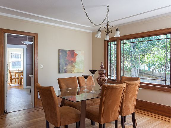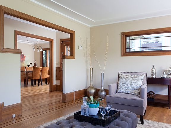 This wonderful 2++ bedroom Craftsman is located on a magical tree-lined street in the heart of Glenview. Many of the original Craftsman details are intact: from the gum wood built-ins and trim to the multi-pane windows and refinished hardwood floors with walnut inlay. This 1920's cottage gets great light and has a formal dining room as well as a lovely living room. A large garage and basement space that could be ideal for a potential build out. The plus room off of the main bedroom is perfect for an office space or just a sunny lounging area. This property is located centrally to shops and restaurants on Park Blvd. as well as great freeway access. A quick jaunt gets you to the Montclair village. There is also great access to Sausal Creek Park and trails.