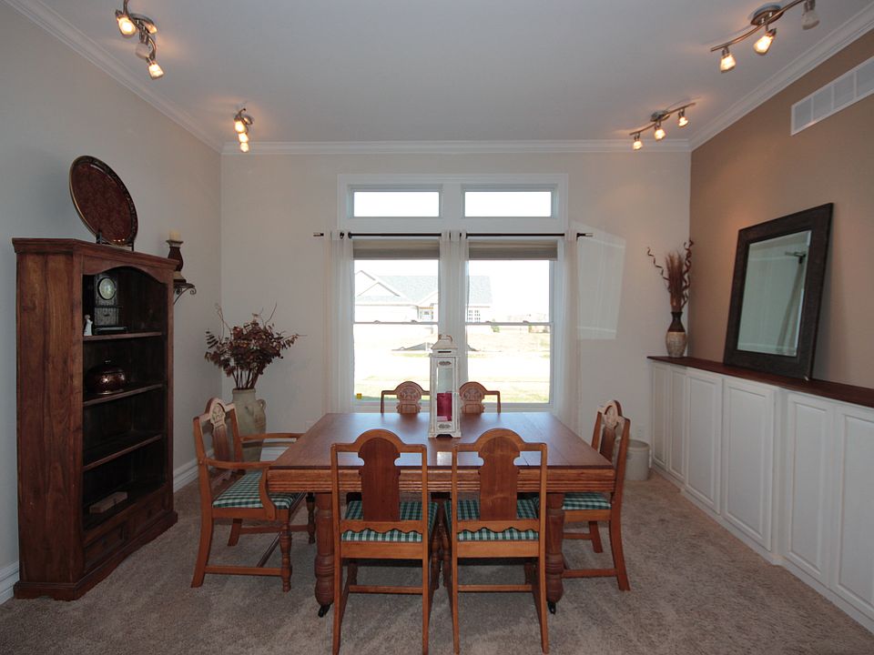 This lovely 2 story Forsyth home offers all the extras! Main floor is open, spacious floor plan with comfy sun room, beautiful, detailed kitchen cabinets & amazing counter space. Kitchen flows into main living area with tons of windows & sunlight. Master suite is oversized offering sitting room & unique master bath. Wet bar in lower level is fantastic for entertaining. Extras include tankless water heater, vaulted ceilings, fireplace in master bedroom....the list goes on & on. 4th bedroom in finished basement. Side entry 3 car garage. Generous side yard, brick mail box, corner lot ....make this your new home!