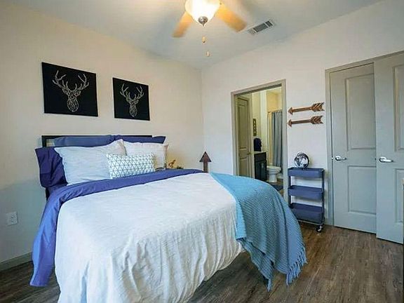 Beautiful apartment complex. You will receive a personal bedroom and private bathroom with a shared common space (laundry, kitchen, living). The apartment is fully furnished with access to a parking garage, 24 hr gym, rooftop event terrace, and club room with a complementary coffee machine. Utilities included but electric separate. You will receive a $20 stipend on electric with every rent payment. Renters insurance required. Lease at least 5 months long. Parking garage included. Pets allowed, pet fee $200 one time payment.