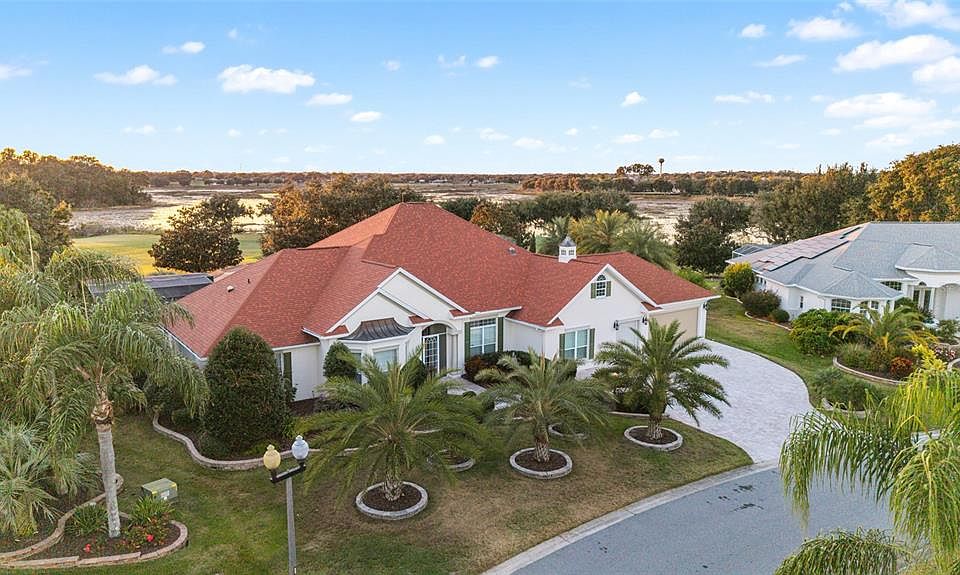 SPECTACULAR, UPGRADED 4 BEDROOM + OFFICE/DEN, 2 BATH, w/ a 2 Car plus TANDEM GOLF CART GARAGE. This Expanded SANIBEL PREMIER features an AMAZING HEATED SALTWATER POOL with/ waterfall AND AN above-ground spa, perfectly positioned on an oversized lot overlooking the Arnold Palmer Championship Golf Course with breathtaking water views, located in the all premier VILLAGE OF BRIDGEPORT AT LAKE SUMTER! This home was significantly expanded in 2022, bringing the total living space close to 4,000 sq ft, and showcases exceptional craftsmanship, thoughtful upgrades, and luxurious indoor/outdoor living. From the moment you arrive, the home radiates elegance with a PAVERED driveway and walkway, beautiful tropical landscaping with lighting, and lightning rods on the roof for added protection. Step inside to discover TILE flooring throughout, CROWN MOLDING, TRAY ceilings w/ LED lighting, SOLAR tubes, NEW electric FIREPLACE (can be converted to gas), and all-new updated light fixtures that illuminate the home with a warm, modern ambiance. The spacious kitchen is designed for both functionality and style, featuring GRANITE countertops, TILE backsplash, freshly painted cabinetry, NEW appliances, an island, a breakfast bar, a breakfast nook, and an open layout perfect for entertaining. The SPACIOUS primary bedroom has French doors that open out to the ENCLOSED FLORIDA ROOM, a LARGE WALK-IN CLOSET with solid wood custom built-ins, SOLAR tubes, an EN-SUITE BATH which offers cabinets, a vanity with GRANITE countertops, double sinks, a ROMAN SHOWER with a soaking tub, a LARGE linen closet, and a separate water closet. On the opposite side of the home are the two guest rooms with the guest bathroom featuring a lovely TILED shower and frameless sliding glass doors, GRANITE countertops, and a linen closet. The OFFICE/STORAGE room has a SOLAR tube and is located off of the laundry room and has the potential for a workout room, quilting/craft room, safe room– the sky's the limit. The 4th bedroom has a BUILT-IN closet and recessed lighting. The enclosed PAVERED lanai extends your indoor living space with a full summer kitchen that opens to your private outdoor oasis. Enjoy the saltwater pool, an extended pavered birdcage, a gazebo, and even an above-ground hot tub, all designed to maximize the stunning water and golf views. Whether hosting gatherings or relaxing quietly at sunset, this outdoor space is unmatched. Additional features include: ROOF (2022), Two AC units one replaced in 2018, the other in 2022, HWH (2022), Plenty of attic space with decking for storage, Electric garage screen door, retractable awning w/ LED lighting, ALL of the tile including the showers have been regrouted and sealed, FRESHLY painted throughout, and PLANTATION shutters. Right around the corner from Lake Sumter Landing, Arnold Palmer Country Club and Golf Course, and so many amenities close by! COME SEE THIS AMAZING HOME. Bond Bal. 13,869