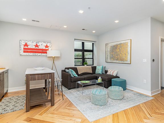 Where Style Meets City Living Your Capitol Hill Retreat Awaits Welcome to Unit T3 at 1345 K St SE, nestled in the boutique Stone Hill Condominiums a modern residence designed for the city-dweller who craves convenience, style, and a dynamic neighborhood experience. This one-bedroom gem offers effortless access to the best of Capitol Hill, Eastern Market, Navy Yard, and beyond. With the Potomac Ave Metro Station just 2 blocks away, getting around the city is a breeze. You'll also be near top grocery stores like Safeway, Trader Joe's, and Harris Teeter. Inside, you'll find a sun-filled, open floor plan with 9 ft ceilings, large windows, LED lighting, a Nest thermostat, and beautiful herringbone hickory hardwood floors throughout. The kitchen is both sleek and functional, featuring Italian cabinetry, quartz countertops, stainless steel appliances, gas cooking, and a movable island perfect for entertaining or everyday living. The modern bathroom is designed with clean lines, a quartz vanity, and a spa-like shower. Relax in your generously sized bedroom, complete with a large closet and a full-size washer and dryer discreetly tucked away for convenience. Building amenities include Key Fob entry, Samsung Ezon Digital Door Lock, bike storage, and a rooftop terrace with sweeping views of DC. Whether you're grabbing coffee at The Roost, catching a game at Nats Park, or exploring local dining gems, this location connects you to the very best of DC living. Owner pays for water and gas. Renter is responsible for electricity, internet and light bulbs/filters/replacement batteries for alarms/keyless doors lock
