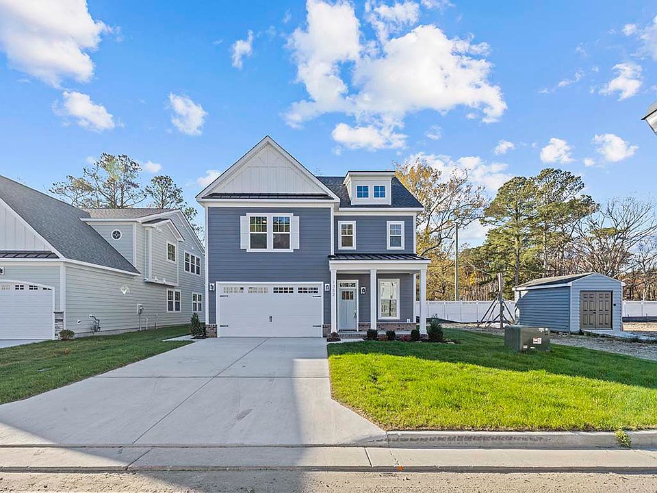 Amazing new construction just 5 min to Croatan beach! Gorgeous 4 BR + front office, fluid and efficient plan with open kitchen/family/dining spaces. The chefs kitchen features gas range w/ custom hood, tile backsplash, quartz island with seating. The bedrooms and convenient laundry are upstairs and the Owners Suite spans the full width of home! It features 2 walk in closets, a soaker tub, large tiled shower! Top finishes including hardie plank siding and gas tankless water heater! Neighbors will become friends at this lovely beach community **pics of similar finished home with optional upgrades