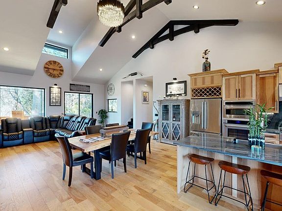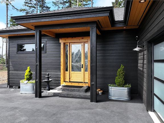 STUNNING, GATED, Three bedroom, two bath, Custom-built 2023 home in the NEW Seacrest Estates subdivision. This spectacular residence features two primary suites, one on the main level and one upstairs, designed with luxury and comfort. Each suite includes spacious walk-in showers, with the upstairs suite boasting dual shower heads and a massive soaking tub. Both suites offer walk-in closets and granite finishes, and each has private exterior access to a deck overlooking the beautiful, serene, forested canyon. The heart of this home is the open-concept kitchen, dining, and living area, accentuated by soaring cedar-beamed exposed ceilings and hardwood hickory flooring. The kitchen is a chef's dream, equipped with custom hickory cabinetry, a 36" ZLINE gas cooktop and hood, stainless steel appliances, a wine rack, a breakfast bar, a grand chandelier, and the finest grade 5 slab quartzite countertops. Every detail of this home is meticulously crafted, featuring 8 ft wood doors and custom finishes. The property is fully prepared for any power outage with a backup propane generator. The home is fitted with Milgard black vinyl windows and doors and includes a new hot tub and sauna for relaxation. The covered portico entry and back deck provide additional outdoor living spaces, and the completely fenced yard ensures security and privacy. For those needing extra workspace or storage, the 20x30 shop with high ceilings is heated and ready for use. The spacious third bedroom can also be used as an office, den, media room, game room, or hobby room. A heard of Rosevelt Elk graces the surrounding area of this home nearly every day. Please look closely at the backyard photos. This property is a must-see. Please request a detailed list of amenities and a 3D tour to appreciate this exquisite home's luxury and craftsmanship fully.