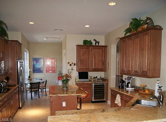 Exceptionally well appointed coach home, ideally located in North Naples only minutes from the Gulf of Mexico beaches, large array of restaurants and shopping areas including Waterside Shops and Mercato. This elegant and spacious 3 bedroom, 2 bathroom Coach home with private elevator includes many upgraded design features. Gourmet kitchen with center island, wood cabinets, granite countertops and back splash, breakfast bar and two large pantries. Crown molding and window casings throughout. The spacious Master Suite features his and hers walk in closets, private bath with dual raised vanities with wood cabinets, granite counter tops, walk in shower and jetted tub.