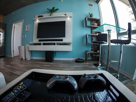 Entire unit equipped with Smart Home features. Nest Smart thermostat, Smart curved TV in living room, Smart TV in master bedroom and every room is equipped with a remote to control lights and fan. Google Fiber 1 GB WiFi. Parking cost additional