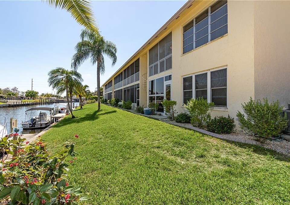 Location is everything! This 3 bed / 2 bath, newly remodeled, gulf access canal front condo is in the heart of Cape Coral. Pack your suitcase and move right in to this fully furnished condo and start enjoying the waterfront lifestyle. Minutes away from several restaurants. Enjoy laying out by the large heated pool. Or go fishing or dolphin watching out back from one of the boat docks. With just one bridge to pass, it's just minutes to the river and the gulf! This home is beautifully remodeled with new cabinets equipped with soft close drawers and doors. Granite counters with white subway tile backsplash. New high end black stainless appliances. New vinyl flooring and nice new furniture. Enjoy waking up to amazing water views from the large master bedroom. Sliding doors give direct access to the nice sized screened balcony from the master, and the living area. The master bath has double sinks as well as a HUGE walk-in closet. New A/C unit keeps this home comfortable in the warm Florida sun. Very large utility room comes with newer washer and dryer. This place is literally move-in ready. Don't miss out! It is a 55+ condo association.