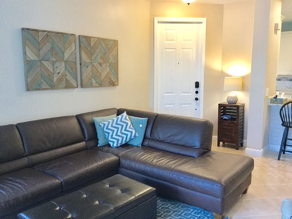 Beautifully updated condo with open floor plan and 9 ft. ceilings. New kitchen with granite, SS appliances and backsplash. New HVAC and washer/dryer in 2016. Updated master bath with travertine flooring and shower. Hardwood in master and second bedroom. Tile throughout mail living area. Walk-in closets in all bedrooms with 2 in the master. Lots of storage. Many more updates. Great location close to beaches, shopping, restaurants and entertainment. Sterling Oaks has 12 Har-Tru tennis courts, pickleball courts, bocce ball and junior Olympic pool with cabana. Community is pet friendly.