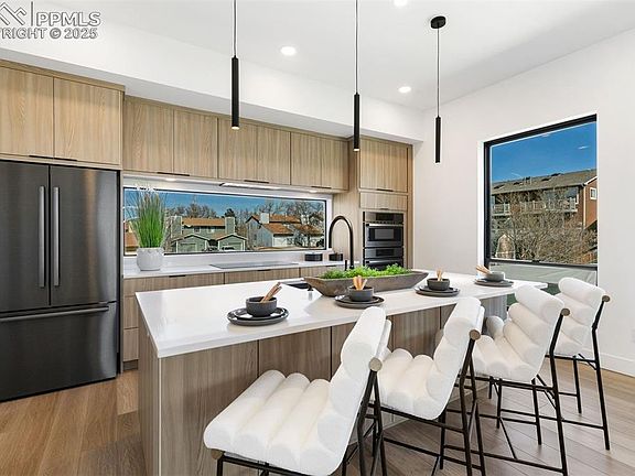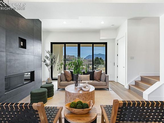 Stylish fireplaceDesigner detailsSweeping pikes peak viewsGenerous patioPrivate backyardHigh-end finishesAbundant storage