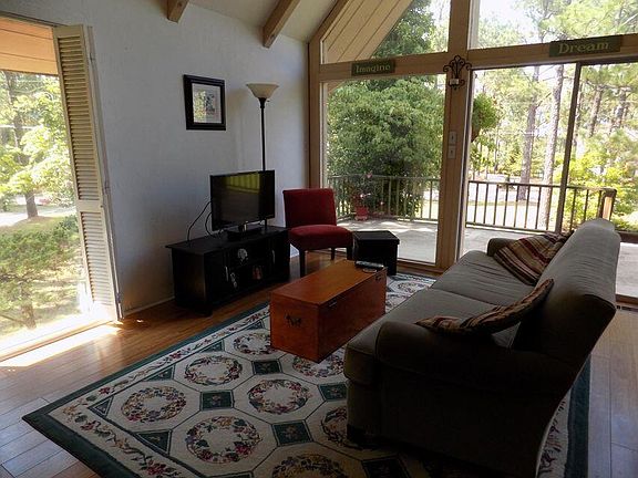 A-Frame home in Southern Pines located on the 2nd hole of Hyland Hills Golf Club! Open kitchen & living room combo with wood-burning fireplace, vaulted ceiling and great views out the large A-frame windows! Great location to downtown Southern Pines and convenient to US 1 for commute to Fort Bragg! Large lot with plenty of parking and privacy! The master bedroom is upstairs and is a loft bedroom with a bathroom and a good amount of closet space! Second & third bedrooms are on the main level with bath. Wrap-around porch makes it easy to enjoy the outdoors! Two great rooms downstairs with an additional wood-burning fireplace, toilet, shower, washer/dryer connections and an additional closed in patio area! Seller welcomes inspections but is selling property as-is.
