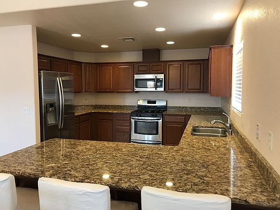 This very well cared for 2010 home has 4 bedroom , two baths, great room and inside laundry! Beautiful kitchen with cherry cabinets , stainless steel appliances including refrigerator and granite counter tops! Great room has vaulted ceiling, tiled floors and slider to back yard. Master bedroom is large, carpeted, with walk in closet and linen cabinets. Master bath has double sinks shower and tub. Home is set up for Internet. Covered patio opens to bricked area for entertaining. Large two car garage.