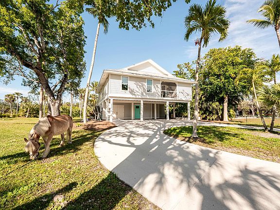 ALMOST SANIBEL…presenting a rare opportunity to own a charming home in the quaint Cottage Point community—just minutes from Sanibel Island. This Key West-style retreat offers the perfect blend of comfort, durability, and coastal charm. With 4 bedrooms, 3 bathrooms, and over 2,000 square feet of living space, this home is designed for relaxed Florida living. Multiple screened patios provide serene outdoor spaces, while impact windows and doors, a metal roof, and a beautifully designed pool & spa deck with Mega Smooth stone pavers add to its durability and appeal. Inside, the home boasts stunning Brazilian Cherry hardwood flooring in the living areas, a beamed vaulted ceiling, and a modern kitchen with stainless steel appliances. The surroundings of mature palms, native vegetation, birds flying in the sky create a peaceful ambiance, making this property a true gem. Whether you're looking for a private oasis or a family-friendly retreat with plentiful land, this unique offering in Cottage Point is a rare find near Sanibel Island.