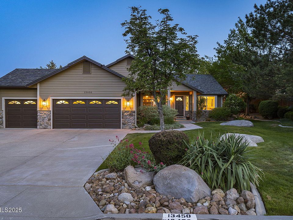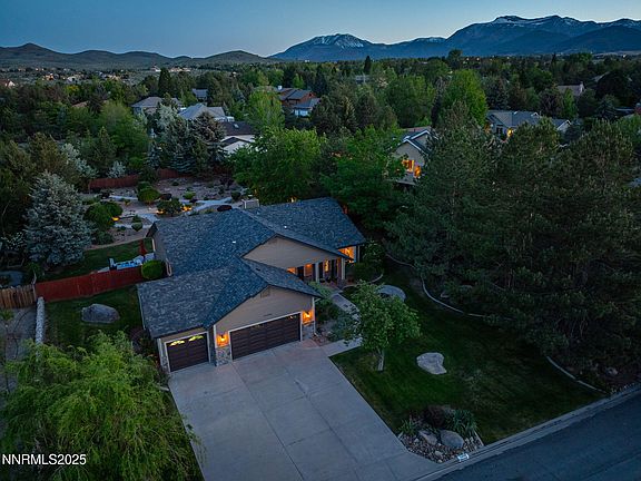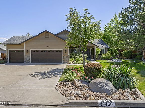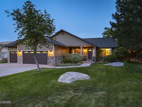 Welcome to this meticulously maintained and thoughtfully upgraded 3-bedroom, 2-bathroom single-level home nestled on a spacious 0.5-acre lot in sought-after Fieldcreek. Spanning 2,067 sq ft, this home offers a perfect blend of modern luxury and functional design. Step into the heart of the home—a fully remodeled kitchen featuring high-end appliances, sleek cabinetry, and engineered hardwood floors that flow seamlessly throughout the main living areas. The well-designed floorplan includes a separate office/den, ideal for working from home or quiet relaxation. The stunning primary retreat boasts a remodeled spa-like bathroom and a brand-new Pella sliding door that opens to your private backyard oasis. Enjoy year-round comfort with a new HVAC system installed in 2023, a newer water heater (2019), and a roof replaced in 2016. Outdoor living is just as impressive with lush, mature landscaping in both front and backyards, a tranquil zen garden, and a 6-person hot tub (only 4 years old). Entertain under the stars with patio and landscape lighting on convenient timers and 220V power in the backyard for added versatility. The oversized garage features brand new insulated doors and a dedicated workshop area complete with extra outlets, lighting, and a heater—perfect for any hobbyist. Additional updates include new windows throughout, all-new interior electrical outlets, new exterior paint, and more. Don't miss this rare opportunity to own a turn-key, single-level home with every upgrade you could ask for—all in one of Reno's most established and peaceful neighborhoods.