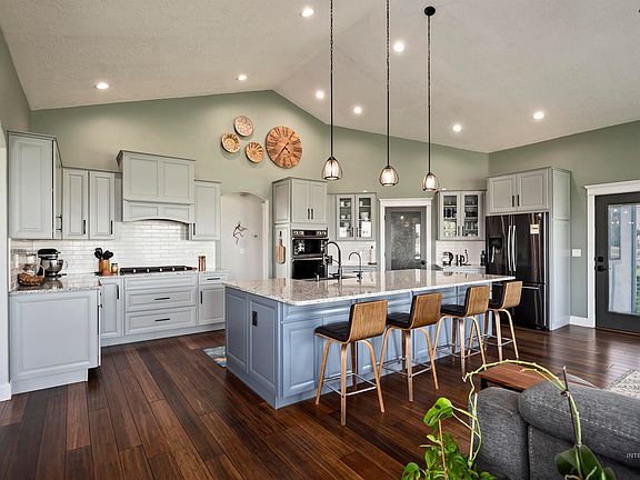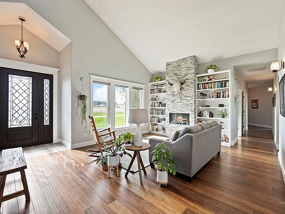 Luxury living near Lake Lowell at the end of a cul-de-sac on 5 irrigated acres! Start your day with a cup of coffee in the custom chefs kitchen as the morning sun floods in to highlight the tastefully updated interior finishes like Quartz counters, Bamboo flooring & modern hardware. This split bedroom floor plan with incredibly spacious Owner's Suite showcases massive renovations & lot improvements. New West facing windows & bedroom sliders, geothermal furnace, reverse osmosis system, water softener plus instant hot water throughout the whole house, 30 x 40 insulated shop with power & drive through doors, multiple garden areas, chicken coop & so much more all within the last 3yrs! Power is off-set by the owned solar panels. Pastures are irrigated by community well. Private well serves the home. 4 raised garden beds, pollinator garden plus a variety of grapes planted. Relax on the back patio with friends & family to watch the sunset. Close proximity to Canyon County wineries & just 3 miles to Lake Lowell.