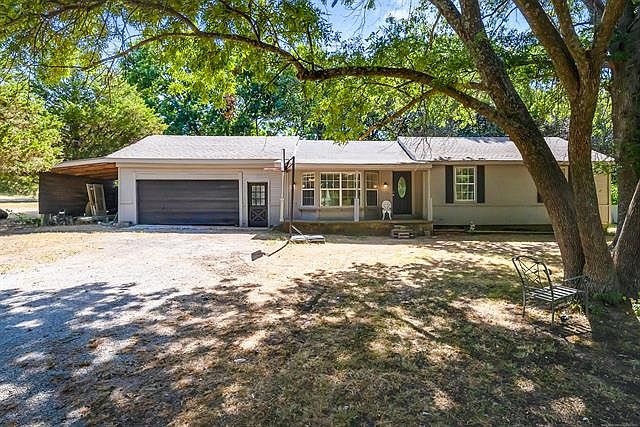 Country setting off Rt. 66 on 7.5 acres (ch) in Claremore. This 3 Bedroom home has a spacious living room with new flooring and opens to the dining room and kitchen. The kitchen has granite counters, subway tile backsplash, eating bar, pantry and stainless refrigerator. All the bedrooms are a nice size with nice closets. Inside inside utility room has ample storage space. The garage is larger than normal & could be a 3-car tandem garage, plus has a carport. The garage could also be heated & cooled as it's insulated, has ductwork and has always been used to re-build cars, so it makes a nice shop. The property has beautiful trees, a creek, barn and a nice size metal storage building/shop that is insulated. There's also hookups for a second home or RV. The trailer that is there now is just used for storage and has no value. This property has a lot to offer and is getting harder and harder to find at this price! Although in a private country setting, you are close to town and have easy highway access. Don't forget to check out the Virtual Tour!