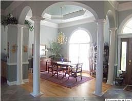 The epitome of elegance. This luxurious home is loaded with amenities, including twelve foot ceilings throughout, lots of heavy crown molding, hardwoods, built-ins, trey ceilings, chair rail, columns, and a gas log fireplace. The kitchen highlights Corian countertops, custom cabinets, and a kitchen island, and the finished basement features a full mother-in-law suite. High atop Green Mountain, enjoy the beautiful mountaintop views from the huge deck while the wooded grounds provide shady comfort.