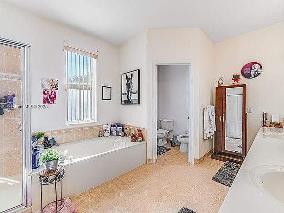 Experience resort-style living in this stunning 5-bed, 3.5-bath home located in the exclusive gated community of Monarch Lakes. This spacious two-story residence features a convenient first-floor guest suite with private bath, elegant formal living and dining areas, and a modern kitchen with quartz countertops, stainless steel appliances, and rich wood cabinetry. The expansive family room is perfect for relaxing or entertaining. Upstairs offers a luxurious primary suite with spa-like bath and huge walk-in closet, plus three additional bedrooms and a versatile loft. Step outside to a private backyard oasis with lush landscaping, a sparkling pool, putting green, and ambient lighting. Accordion shutters and a circular driveway complete this exceptional home. only two months deposit