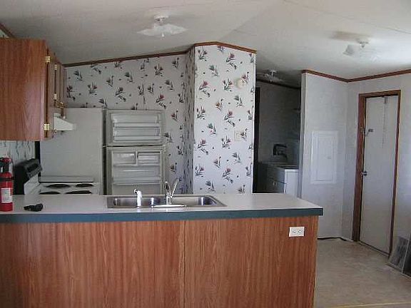 Small mobile home, 36x14, on acreage with a 2 car metal carport. Acreage goes across creek with running water and fish fed by Wichita Mountain Lakes. 2001 Redman home. Common drive with rock house in front.