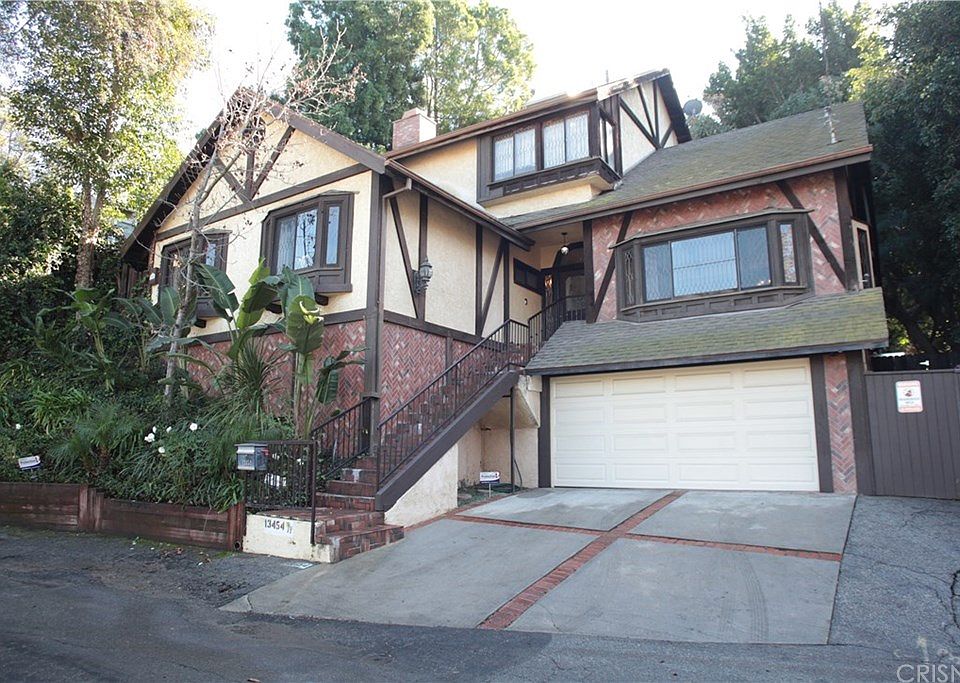 REDUCED!!! Come take a new look at this lovely, character, English Tudor home, steeped in Hollywood history & waiting to be re-imagined. Located south of the Blvd, close to restaurants, shops & more, this multi-level property begins with the attached garage that has a large separate room for storage or other use. A staircase leads to the 1st level that consists of living room with vaulted beam ceilings, formal dining room, kitchen with breakfast nook, 2 bedrooms, guest bath, powder room & Harry Potter-like closet. Original details include leaded glass windows & etched interior glass panes. The 2nd level features a spacious master suite with fireplace, closets galore, large great room with fireplace, wet bar & 2 additional bonus rooms, ideal for office or nursery. Dual zoned heat & AC & central vacuum system. French doors lead to private back yard with pool/spa perfect for entertaining.