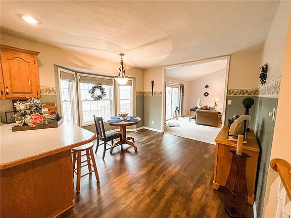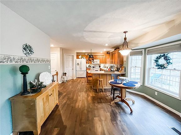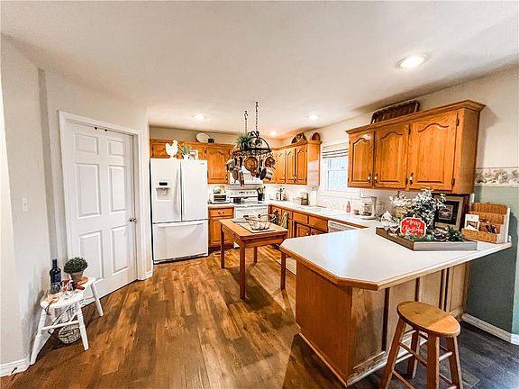 This spacious custom contemporary home has just hit the market and is available for tour. With 1,614sf and featuring 4 bedrooms and 3 baths there is room for all. Large open living space with vaulted ceiling with double opening to dining and kitchen. Double doors also lead out to large spacious deck where outdoor living can be enjoyed by many while overlooking the beautiful landscaping in the Spring & Summer. Kitchen features a peninsula, custom oak cabinets and connects easily to laundry room and 2-car garage. Staircase to finished walk-out basement with more living space, custom oak bar and entertainment area, 4th bedroom and home office with large storage space with built-in shelving. Home sits on a 1.6 acre lot just outside of city limits in Rolling Acres and also includes a concrete driveway and detached storage shed.