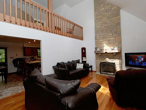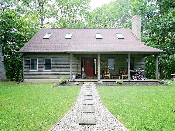 Updated cabin-esque home sitting st the top of a ridge with 30 acres of woods and 10 acres of pasture. Over the past 5 years the home has received a steel roof, a new 3 bay steel garage, multiple decks surrounding the house with stairway descending down behind the home towards the pasture and stable. New oak flooring throughout. Kitchen and both bathrooms fully remodeled. Enclosed porch at rear of house made into a 4 season room with large windows facing the pasture. New HVAC system.