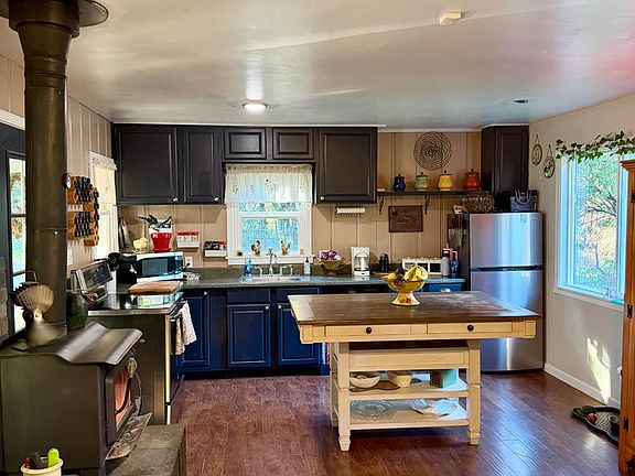 Cozy wood-burning stoveMultiple shedsWarm welcoming atmosphereHalf-acre of usable land