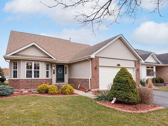 Popular Burton model home, 2 bedrooms, 2 1/2 baths, Remodeled kitchen, newer Furnace, AC and Water tank. Living room has a gas log corner Fireplace, vaulted ceilings and access to the deck and yard. Dining room is connected to the living room. The kitchen has newer appliances and countertops. A convenient breakfast area faces and eyebrow cul-de-sac and green area. The oversize Master bedroom is light and bright with a large walk-in closet and a standard 6 ft. extra closet. The Master Bath includes a double bowl vanity, Separate shower, and a soaking tub. Laundry is in a covenant hall closet and allows for full size appliances. All appliances will convey with the property. This home also has a basement with a concrete storage crawl space. Basement has been finished and will include a half Bath, a Bar, bar stools and an electric fireplace. Carillon is an ACTIVE 55+ adult community w/(3) 9 hole golf courses, Pro shop, (3) pools, Tennis & Pickle ball, Boccie ball, game and craft rooms, lots of Clubs, Activities & Planned Trips, restaurant, ponds for fishing. Easy access to Weber and I-55. It's time to take a permanent vacation from lawn maintenance and snow shoveling. Guard Gated community.