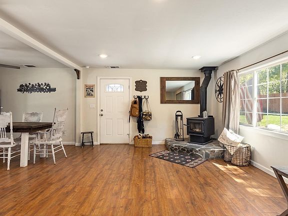 Welcome home to this adorable farmhouse cottage located just minutes from town! This 2 bedroom 1 bath home has been updated with quality finishes and attention to detail. The kitchen features quartz counter tops, all new appliances, ample cabinet space, a gas range, and double sinks beneath a window looking out on to the backyard. Laminate floors flow throughout the home and the living room has a free-standing wood stove to keep the whole house warm in the Winter. The bedrooms are separated by a full bath and a laundry area with cabinet storage. Outside you'll find a lovely small farm oasis that is fully fenced with a chicken coop, garden area, woodshed, and plenty of sun to create and grow a fantastic garden. The concrete back patio is the perfect place to enjoy with friends and family. There's a large insulated shed, storage space under the house, and plenty of parking. This home is turnkey! Come enjoy in-town country living here and make it your own!