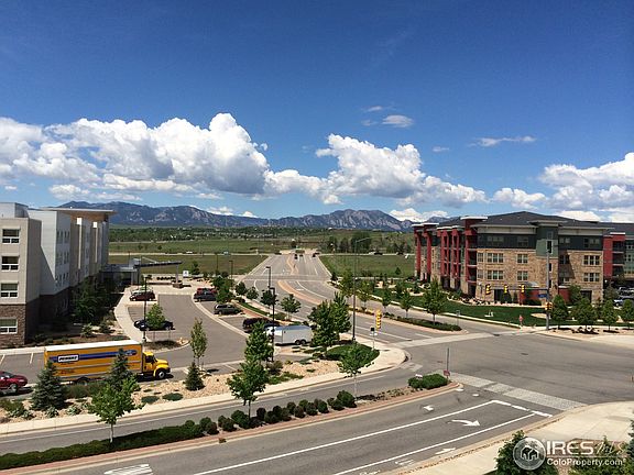 Top floor-SW views- mountain,country,city from balcony,all windows-.6mi to NW PKWY-1mi to RTD Station-1.5mi to Mall-3mi to Louisville-3mi to Carolyn Holmberg Preserve-11mi to Boulder-18mi to Denver- 9' ceilings-gas fireplace-HW floors in living area,hall-custom lighting-custom paint-granite countertops-42" cabinets-counterdepth frig-cast iron sink-one assigned garage-clubhouse,gym,outdoor pool, indoor and outdoor fireplace, hot tub, grills Detached garage available for purchase at later date