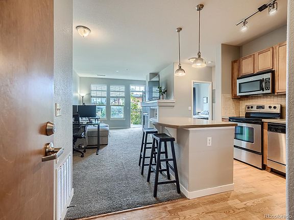 Welcome to this charming one-bedroom one-bathroom condo, offering modern comfort and convenience in a vibrant urban setting. As you step inside, you'll be greeted by an open and inviting kitchen, thoughtfully designed to maximize both functionality and style. The kitchen is a chef's dream, boasting sleek countertops, stainless steel appliances, and ample storage space. The island with bar seating provides a convenient spot for quick meals. The adjacent living room provides a cozy atmosphere, perfect for relaxation and entertainment. With ample natural light streaming through large windows, it creates a bright and airy ambiance when you open the door to the attached balcony. The primary bedroom is a tranquil haven, offering a serene escape after a long day. It features a spacious layout, and offers generous closet space for all your storage needs. The primary bathroom showcases contemporary fixtures and a clean, minimalist design. It features a bathtub, shower, a stylish vanity, and ample storage for your toiletries. It's a space where you can unwind and rejuvenate. The stackable clothes washer and dryer will stay with the unit. Additionally, this condo comes with access to a range of amenities, such as a clubhouse, fitness center, swimming pool, and communal areas where you can socialize with fellow residents. The building offers secure entry by way of gated access as well as a community parking garage with one designated parking spot and storage locker, ensuring peace of mind and convenience. Located in a desirable neighborhood in Broomfield county, this condo is just minutes away from trendy cafes, restaurants, and shopping. It provides easy access to public transportation and is a short distance to Denver or Boulder, making commuting a breeze. Don't miss the opportunity to call this stylish one-bedroom condo your own. Experience the perfect blend of comfort, convenience, and contemporary living. Make this turn-key move in ready luxury condo your new home today.
