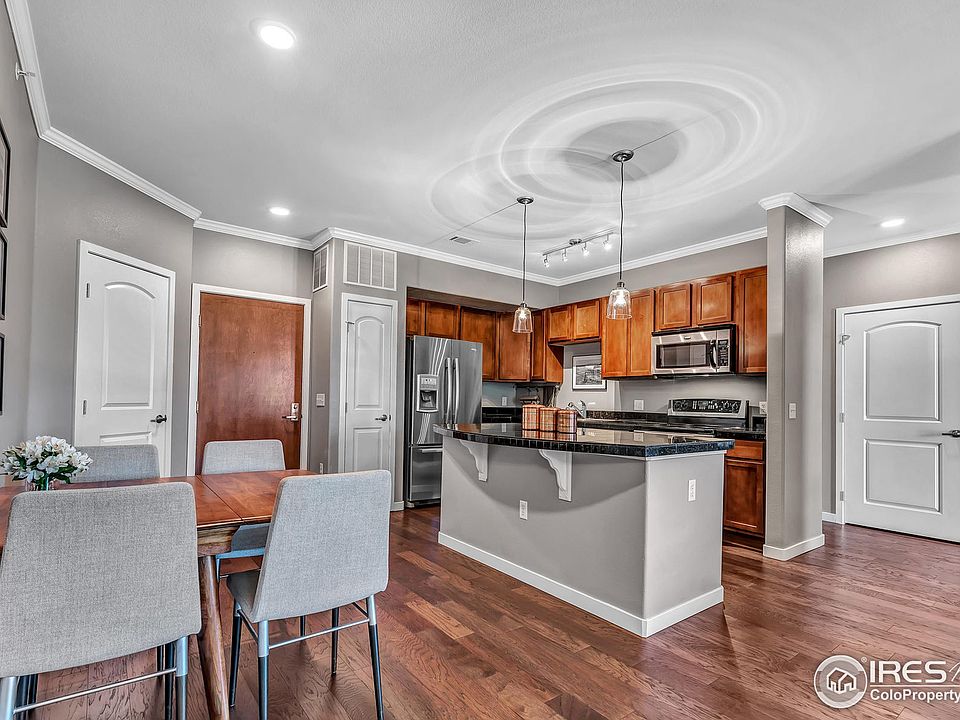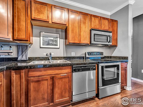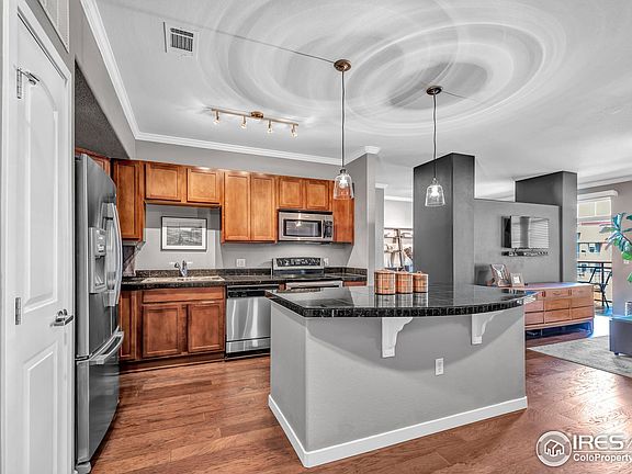 STUNNING, move in ready condo on the 4th floor (elevator) of the one of the most desirable condo communities in Broomfield. Featuring NEW engineered hardwood floors, NEW LED lighting, & granite tile counter tops. Master is filled with natural light & a 5 piece bath. Floor plan offers a divided area off the living room for a private office/flex space. Bonus: view patio, community pool, hot tub & work out facilities. Public transportation, trails, shopping & restaurants make this ideal!
