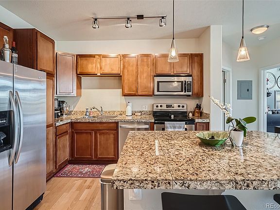 Beautiful condo in the highly sought-after Vantage Pointe Lofts community of Broomfield! This one bed, one bath unit is all on one floor, and offers abundant natural light from every window. The modern kitchen boasts stainless steel appliances and a kitchen island that opens directly to the living room. Enjoy your morning coffee on the private balcony off the living room, taking in the beautiful Colorado scenery. Located in a prime location, this condo is just a short drive away from Denver, Boulder, and DIA, making it perfect for commuters or anyone looking to explore the city. You'll love the convenience of this central location, with endless options for shopping, dining, and entertainment just moments away. The building amenities offer elevators for convenient access, a pool for relaxing on warm summer days, a hot tub, and a gym. As part of the Vantage Pointe Lofts community, you'll enjoy close proximity to Open Space parks, hiking and biking trails at the Carolyn Holmberg Preserve! Recent updates include a new dishwasher, new laundry center, and new window treatments. Enjoy everyday convenience with assigned parking space #99 and an additional storage locker in front of the garage parking space!