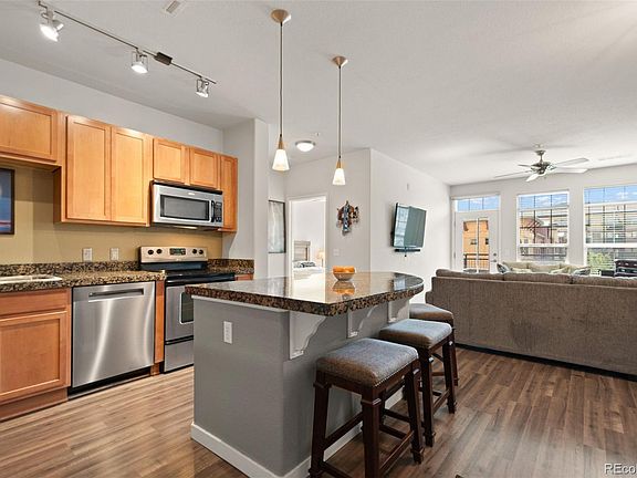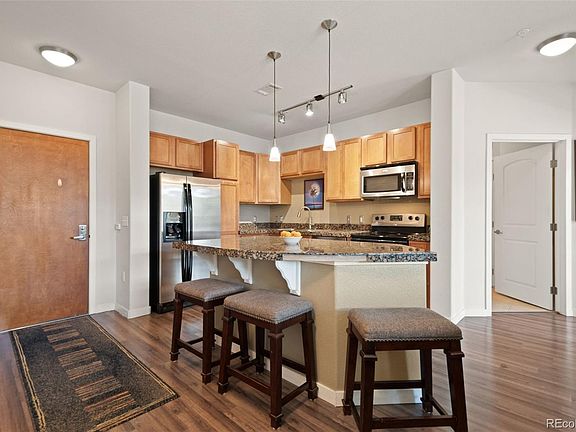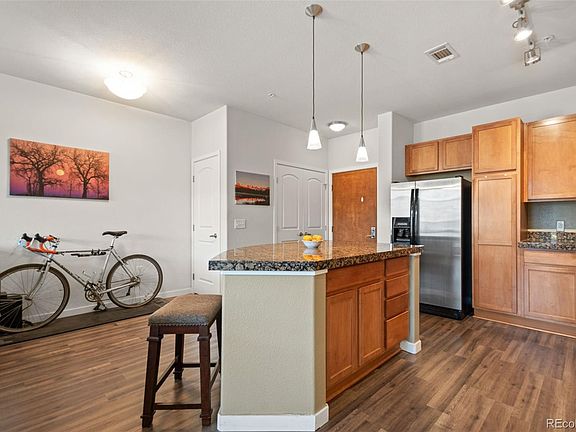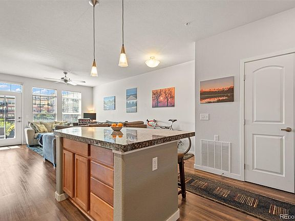 This second floor condo offers modern living with comfort and convenience. The kitchen features beautiful granite countertops, a spacious island, and stainless steel appliances, including a brand-new Bosch dishwasher. Newer laminate flooring runs throughout the entry, kitchen, and living room, creating a cohesive flow. Step out onto the sunny balcony, the perfect space for morning coffee or relaxing in the afternoon sun. The bright and airy bedroom features a wall of windows that fill the room with natural light and a generous walk-in closet that provides ample storage. The bathroom is designed for relaxation, with a separate soaking tub, tile floor, and plenty of counter space and storage. A full-sized washer and dryer are included, adding convenience to your everyday routine. The community offers a pool and hot tub, with outdoor fireplace and grill, a fitness center, and clubhouse with its own kitchen, pool table and fireplace. You are just minutes from Rock Creek Regional Trail, Rock Creek Farm & Open Space, Flatirons Mall, and easy access to Highway 36 and the Northwest Parkway for commuting to Denver or Boulder. RTD express bus to the airport is one block away! Both the building and garage are access controlled. Parking is in the community garage with reserved space, additional storage, and shared level 2 electric vehicle chargers. The elevator provides an easy way to get from the garage to your door. This condo combines modern amenities with a fantastic location, making it a wonderful place to call home!
