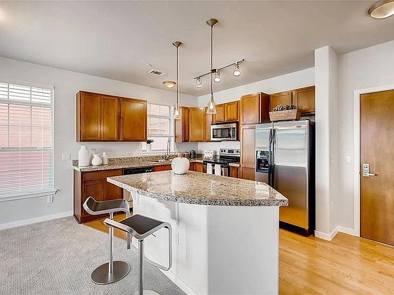 Experience the best of urban living in this bright and spacious corner-unit condo, located in the heart of Broomfield Urban Corridor just minutes from Interlocken Business Park and Flatirons Crossing Mall. This third-floor, corner-unit home offers an open-concept layout, modern finishes, and stunning mountain views. Key Features - Spacious & Open Concept Seamless flow between the living, dining, and kitchen areas, ideal for entertaining or relaxing. - Abundant Natural Light Large windows and a corner-unit location provide bright, airy living spaces throughout the day. - Modern Kitchen Featuring stainless steel appliances, granite countertops, ample cabinet space, and a dining area. - Two Generously Sized Bedrooms The primary suite includes a luxurious 5-piece bath with a soaking tub. - Two Full Bathrooms Stylish, modern finishes throughout. - Ample Storage Spacious closets in both bedrooms provide plenty of room for organization. - In-Unit Washer & Dryer A convenient addition for effortless living. - Private Balcony Enjoy fresh air and mountain views. - Reserved Parking Spot Covered and located near the elevator in the parking garage for easy access. - Energy-Efficient Features Double-pane windows, energy-efficient appliances, and a newly installed high-efficiency furnace and hot water heater help reduce utility costs. - Gas Fireplace Adds warmth and ambiance to the living space, perfect for relaxing evenings. - High-Speed Internet & Cable Ready Comcast Xfinity available for fast streaming, gaming, and remote work. Community Amenities - Outdoor Pool (Seasonal) & Year-Round Hot Tubs Perfect for relaxation. - Well-Equipped Fitness Center On-site workout facilities. - Clubhouse with Pool Table & Entertainment Areas Great for social gatherings. - Outdoor Spaces for Entertaining BBQ areas and beautifully maintained grounds. Prime Location - Ideal for Commuters Easy access to major highways for quick travel to Denver, Boulder, and Interlocken Business Park. - Steps from the Park & Ride Direct transit options to Denver International Airport, Downtown Denver, and Boulder via RTD. - Minutes from Flatirons Crossing Mall Shopping, dining, and entertainment nearby. - Close to Parks & Trails Walking paths, open spaces, and outdoor recreation in every direction. Schedule a tour today to see everything this home has to offer. - Lease Duration Minimum 12-month lease. - Utilities Owner pays for water and trash. Renter is responsible for gas and electricity. - Smoking Policy No smoking allowed on the property. - Pet Policy No pets allowed. - Application Fee $40 non-refundable application fee via Intellirent. - Screening Criteria Credit, background, employment, and rental history will be verified. - Showings By appointment only.