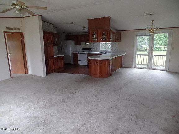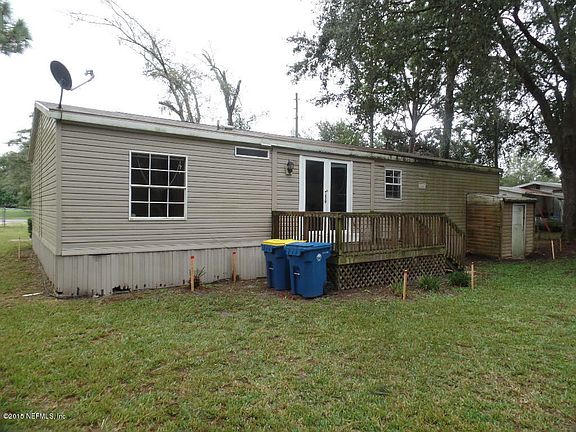 Doublewide on deep lot offers a large and private backyard, handicap modified entry ramp, and an open floorplan that includes a spacious living room w/single pane and transom windows, split-planned master suite w/full bathroom, terrific kitchen w/all appliances and lots of cabinets, pretty dining area w/French doors that open to a rear deck, and 2 more bedrooms w/walk-in closets. Entire lot is fenced w/a double gate! Quiet yet convenient location close to Louis S. Sheffield Elementary, First Coast High School, Publix, River City Marketplace, William F. Sheffield Regional Park, and the Beltway/I-95 exchange!