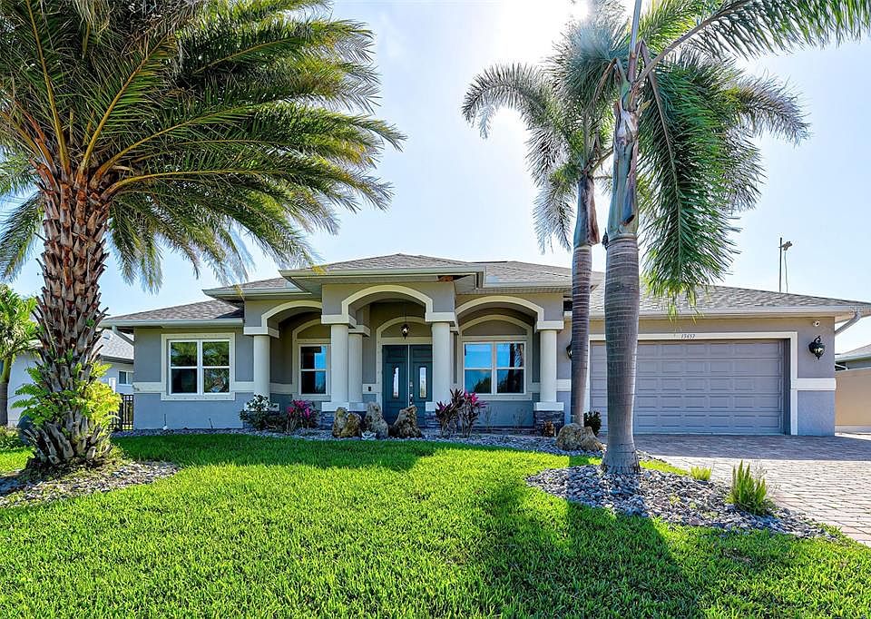 ONE -OF-A-KIND, Gulf access, waterfront home with 5 bedrooms, 4 bathrooms in the highly desirable waterfront community of South Gulf Cove, just minutes from the beautiful Boca Grande. We proudly present the Energy Efficient Hightower Model. More than you are looking for. Upgrades not needed. This custom built home has all the amenities. Energy efficient Hybrid Water Heater and a highly efficient 18 Seer HERS rated A/C system have both recently been installed in the home. This home boasts travertine floors throughout, granite countertops, solid wood cabinets with dovetail edges and soft close hinges. The master bathroom contains TRIPLE head shower, Heated jacuzzi tub and double vessel sinks. Tray ceilings, with a double tray in the great room which is lighted make the open living room seem even bigger and more luxurious.. Special features include but aren't limited to ceiling fans throughout and 8ft doors. Relax in peace in your recently rescreened lanai which contains a heated pool and spa. Down at the water, you have a rip-rap and concrete seawall, a dock that stretches across both lots and also has two functional boat lifts. The beautiful, connected paver driveway provides for easy access from the home to the detached garage and apartment. The smart thermostat can be controlled with your phone. BUT WAIT!! THATS NOT ALL!! The detached garage and apartment which was built in 2019 provides both extra garage space, as well as a fully functional, 1 bedroom, 1 bathroom apartment equipped with its own living room, kitchen, and enclosed lanai. There is also an oversized, 25 feet deep garage and work area as well as hookups for a separate laundry area. The amazing, detached garage and apartment is also fully run on solar, and each area has its own split unit system for A/C or Heat. This compound is a must-see with so many luxuries that living in paradise offers as well as massive income potential or an amazing separate space to house all those family and friends who love to come visit. This waterfront canal home(s) feature over 2925 square feet of living space between the main home and the separate well-designed guesthouse.