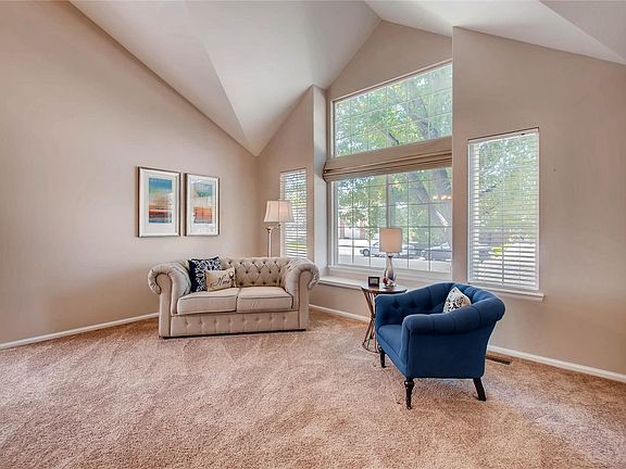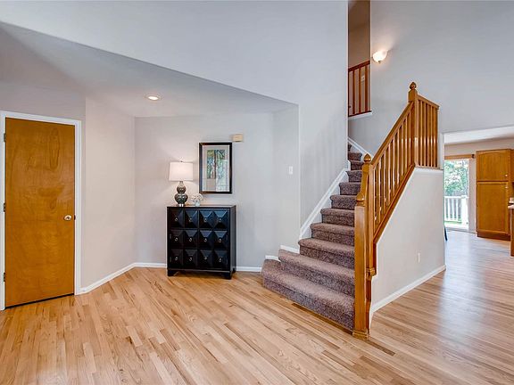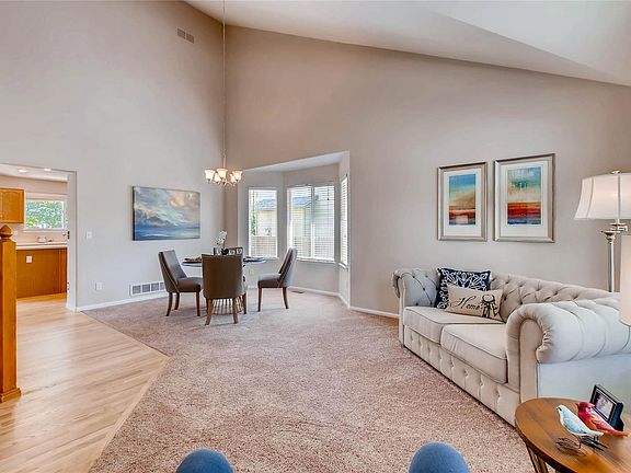 Clean & Sharp! This move-in ready home presents an open concept floor plan that welcomes you with soaring vaulted ceilings, accentuating the living and dining rooms with plenty of natural light. Newly refinished hardwoods lead you to the spacious kitchen with center island, stainless steel appliances, generous cabinet and counter space, and access to patio. Adjacent to kitchen is the bountiful living room w/ built-ins, fireplace, and convenient powder room. Up the stairs is the large master suite w/ private 5-piece bath & walk-in closet, two sizable bedrooms sharing a Jack-n-Jill bath, and laundry (washer & dryer included). Brand New Carpet & Fresh New Interior Paint throughout. Newer Exterior Paint. Updated Baths. Trex Deck patio. Professionally Landscaped. 2010 Roof. Unfinished basement has two egress windows with rough-in plumbing. Walking distance to Trails Park North & West Lake. Minutes to shopping, schools, and I-25.
