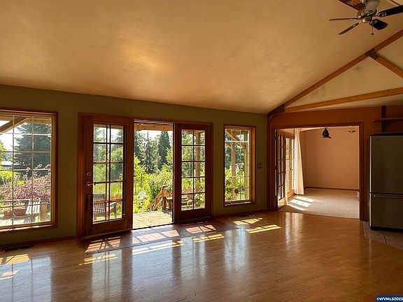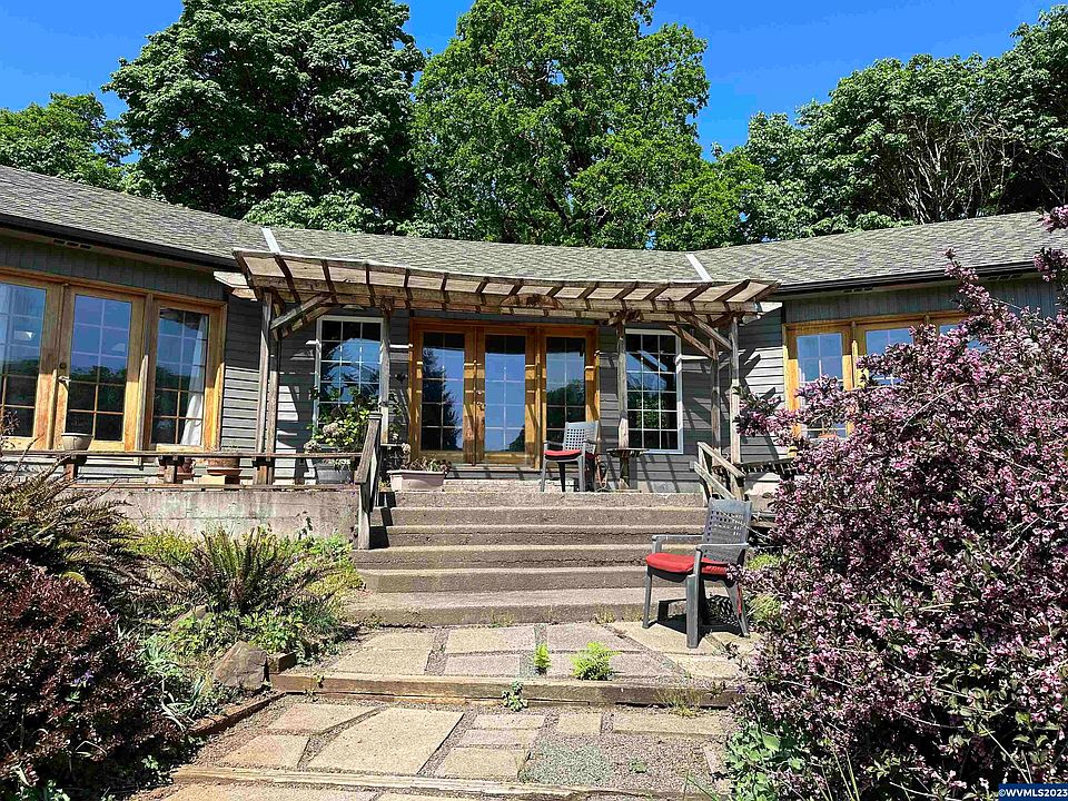 Nestled beneath the canopies of oak & maple branches, you'll find your secluded oasis. 2.95ac of a naturalist's paradise. This 2BR/2BA single story home features amazing natural lighting throughout with beautiful view & an open, spacious living floor plan. Bedrooms are located at opposite ends of the house for privacy, each with their own bathroom access. Primary suite features large walk in closet and private bath. Both bedrooms have french doors to patio area. Large detached shop has 1 garage door bay.