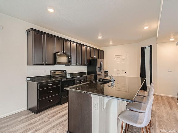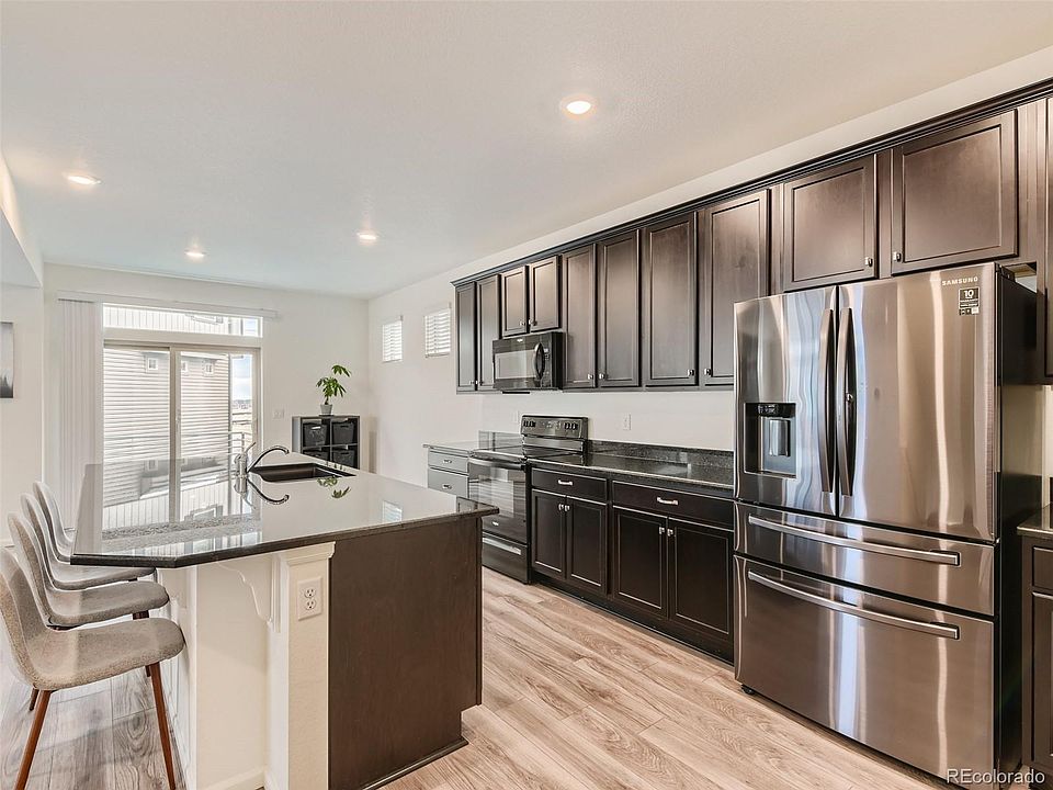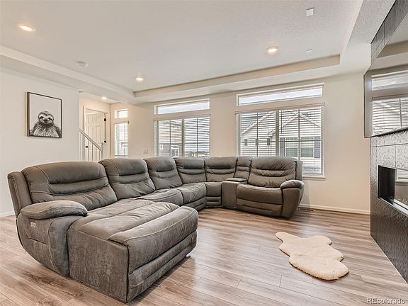 This one year old stunning new construction home features 3 bedrooms, plus an office, 4 bathrooms and luxurious upgrades throughout, providing a stylish and contemporary living experience. The modern tiled floor-to-ceiling vertical fireplace adds warmth and ambiance to the living room, while the upgraded luxury vinyl plank floors throughout creates a seamless flow between all living areas. The spacious and open-plan kitchen, complete with granite countertops and stainless steel appliances and large island is perfect for preparing meals while still being involved with what's happening in the living room. The master bedroom suite features an elegant bathroom with double vanities, a gorgeous tiled shower and a walk-in closet. The lower level flex space is perfect as a 2nd family room. A highlight of this home is the special pet turf in the backyard, which provides a safe and comfortable area for your furry friends to play and explore and clean up is easy (an $11,000 upgrade). With a 3 car tandem garage, there's plenty of space for vehicles, storage, or a workshop. Located in the sought-after Reunion community, with amazing pools, clubhouse, recreation/fitness center and the awesome Reunion coffee house. This exceptional property is close to schools, shopping and dining. Don't go buy brand new when you have this opportunity to own a 1 year old home with window coverings, completed backyard plus 1 year old top of the line refrigerator and washer and dryer.