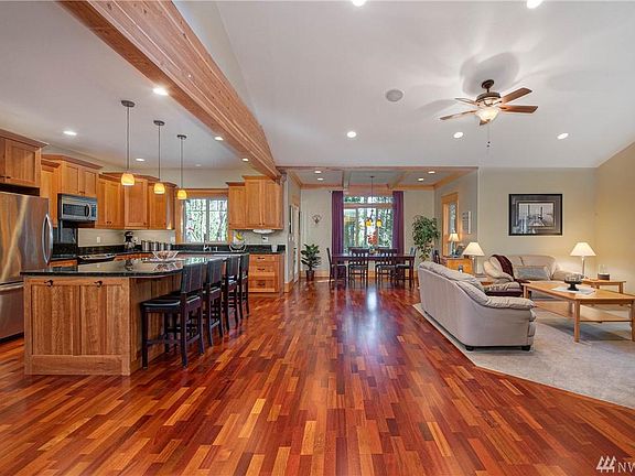 Looking for privacy nestled in the trees, space and your sanctuary to call home? This estate property features a main house with architectural detailing & separate detached guest cottage home featuring all the amenities of home away from home. Master on the main level, open concept living, vaulted ceilings, gourmet kitchen with stainless appliances & eat in island. Plus, two car attached garage & a separate 3 bay shop/ garage for all the toys. Large rare acreage to enjoy the great outdoors.
