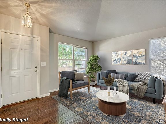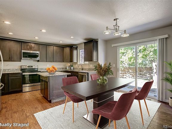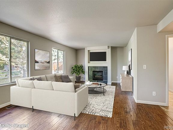 Incredible opportunity to own an updated two-story home tucked away in Shadow Ridge! Step through the front door into the spacious open concept main floor that is accented by gorgeous hardwood floors, a soaring vaulted ceiling & abundant natural light. Enjoy entertaining from the well-appointed kitchen that boasts beautiful granite countertops, ample cabinet space, a pantry, modern recessed lighting & stainless steel appliances including a new range. The dining room flows into the expansive family room that is anchored by a cozy gas fireplace. Upstairs, you will find 2 sunny secondary bedrooms, a full bathroom & the primary suite that features a cathedral ceiling, a walk-in closet & a private bathroom with double sinks. More living space awaits in the finished basement that offers a sizable rec room, a conforming bedroom & another bathroom. The fenced backyard has a 30' x 9' patio and large mature trees for shade and awaits personalization from your green thumb. Additional updates include a new garage door, a new garage door opener, James Hardie fiber cement siding, updated gutters, updated downspouts & an updated roof with 30-year Owens Corning architectural shingles. Wonderful location in a well-maintained community with a pool that is blocks away from Tarver Elementary School and Summit Grove Park. Relish easy access to Orchard Town Center, Denver Premium Outlets, St Anthony Hospital, golf, dining & more.
